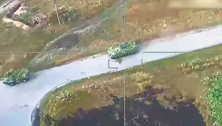 Минобороны РФ опубликовало видеозаписи, запечатлевшие уничтожение украинской боевой техники. Кадр из видео Министерства обороны РФ