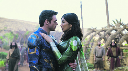 Печально, но Хлоя Чжао, увлекаясь супергероическими позами, светящимися мечами и сверхспособностями (хотя приставку «сверх» тут можно употребить с большой натяжкой), напрочь забывает про такое необходимое любому кино понятие, как ритм – три с половиной часа вязкой болтовни и вялого экшена. Еще и в исполнении максимально неинтересных персонажей, зацикленных каждый на своей невыдающейся арке и ждущих момента, когда можно будет просто, без лишних слов и актерской игры, красиво встать перед камерой на общем плане. Попытка придумать им всем какую-то историю оборачивается тем, что даже гигантского хронометража на всех не хватает – даже на Анджелину Джоли, у которой, по идее, самый (ну или один из – в конце концов есть еще и девочка, которая из-за своей «вечности» не может повзрослеть) трагический из всех предложенных образов. Драматургическая планка, которую «Марвел» достигли с «Мстителями», снова падает на зачаточный уровень – про такие фильмы принято пренебрежительно говорить «а, ну это же по комиксам».