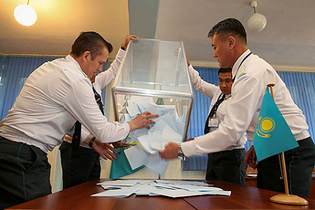 На участках для голосования Казахстана подсчитывают голоса избирателей. Фото Reuters