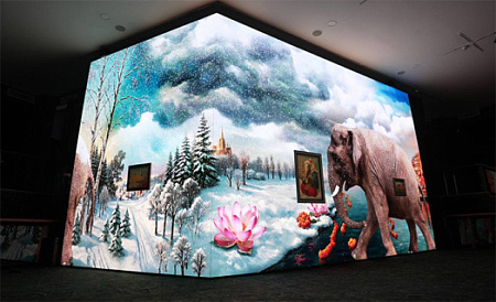 В Мумбаи входную зону оборудовали крупноформатными LED-экранами, создающими эффект погружения в мир художественных образов. Особое внимание привлекли работы, сочетающие традиционные русские узоры — мотивы гжели, хохломы и палеха — с культурными кодами Индии. Специально для этой галереи Никас Сафронов создал инсталляцию в виде индуистской мандалы. Она оживала внутри огромного купола, визуализируя ключевую идею проекта — объединение культур Востока и Запада.