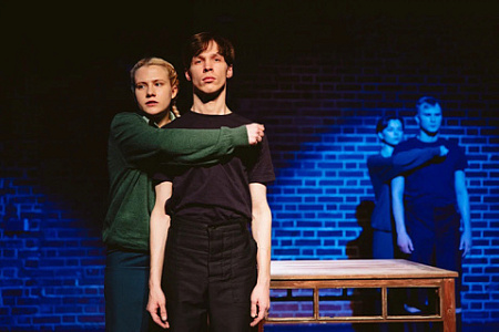 Кирпичная стена помещения стала органичной декорацией для постановки Крестьянкина. По углам сцены – две двери, огороженные решетками: это входы в колонии для юношей и девушек. Туда отправляется режиссер, играющий самого себя, и таким образом вводящий в спектакль элемент автофикшна. У героя забирают документы и личные вещи, и он фиксирует свое состояние страха и дискомфорта.