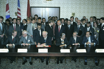 Подписание в Москве 3 октября 1990 года договора «Два плюс четыре» об окончательном урегулировании в отношении Германии. Фото РИА Новости