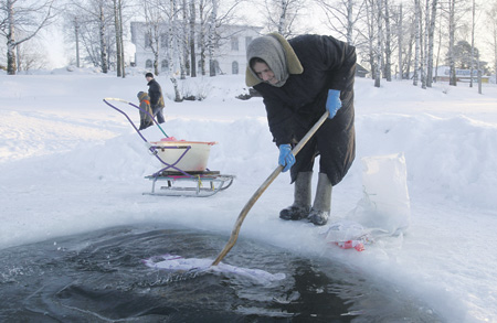Стирку в проруби можно рассматривать как элемент стратегии выживания в кризис. Фото Reuters