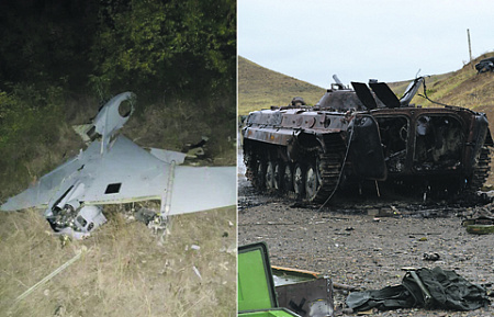 Разбитая азербайджанская и армянская военная техника. Фото со страницы Министерства обороны Армении и Министерства обороны Азербайджана в Twitter