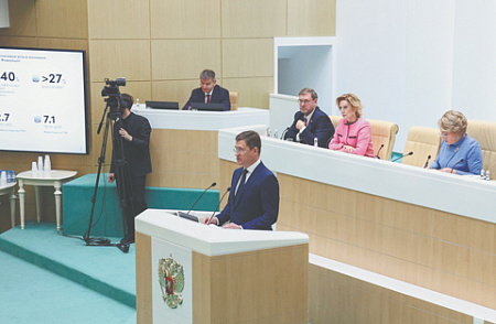 Вице-премьер Александр Новак рассказывает российским сенаторам об успехах отечественного топливного комплекса. Фото с сайта Совета Федерации РФ