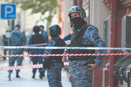 Сотрудники Росгвардии у офиса Wildberries в самом центре Москвы. Фото РИА Новости