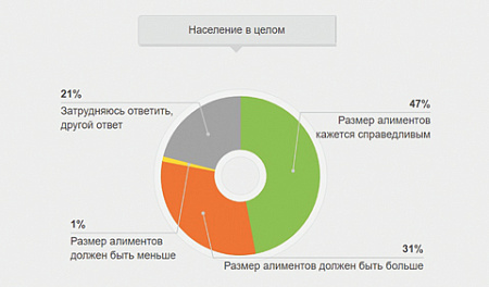 Опросы фонда «Общественное мнение» показывают, что в нашей стране почти каждый третий (31%) выступает за увеличение обязательного по закону размера выплаты алиментов.