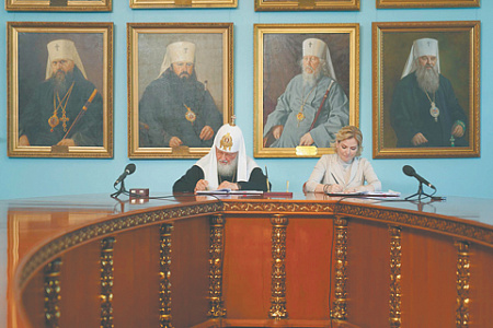Патриарх Кирилл и министр культуры РФ Ольга Любимова подписали договор между Третьяковской галереей и Троице-Сергиевой лаврой о передаче в безвозмездное пользование лавре иконы Святой Троицы, написанной Андреем Рублевым. Как сообщает в среду сайт РПЦ, торжественное событие состоялось в Портретном зале в здании Санкт-Петербургской митрополии в Александро-Невской лавре. «Историческое событие совершилось, – обратился к собравшимся патриарх. – Мы сегодня символически свидетельствуем о том, что страна живет в иное время, в иную эпоху. Прошло – надеемся, безвозвратно – то время, когда святыни изымались из церкви, и наступило время, когда церкви возвращаются святыни, даже представляющие огромную культурную, историческую ценность. И документ, который мы сегодня подписали, свидетельствует очевидным образом о том, что безвозвратно ушла в прошлое та страшная эпоха, когда под видом изъятия церковных ценностей изымались святыни земли русской и народ наш лишался возможности возносить перед ними свои молитвы».