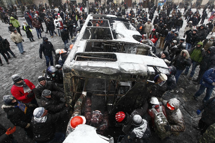 Спустя несколько часов был дан старт зачистке майдана: спецназ получил подкрепление и стал теснить людей на площади, были подожжены крайние палатки, к ночи загорелся Дом профсоюзов, в котором находился и штаб майдана, и пункт экстренной медпомощи. В этот день силовики без опознавательных знаков стали стрелять по участникам протеста. Руководство милиции заявило, что огонь был открыт в ответ на выстрелы из толпы.