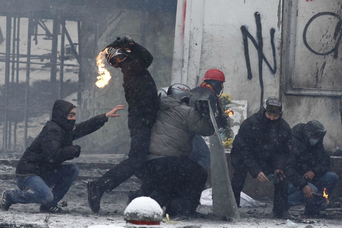 Виктор Янукович, укрывшись за спинами омоновцев, подставил не только «Беркут». Фото Reuters
