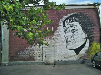Творчество Юрия Анненкова вдохновляет современных уличных художников. Граффити по мотивам портрета Анны Ахматовой на стене московского дома. Фото автора