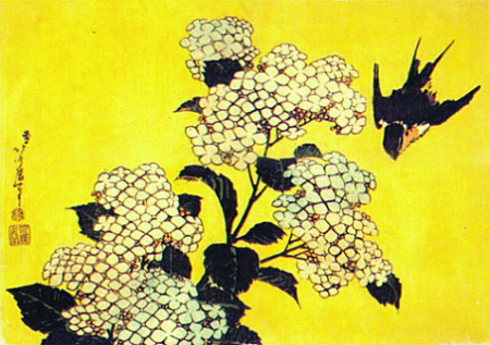 Научи меня, ласточка хилая… Хокусай. Гортензия и ласточка. 1834