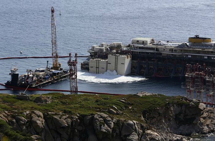 У итальянского острова Джильо проводится операция по подготовке лайнера Costa Concordia к буксировке в порт Генуи. Круизное судно потерпело крушение в ночь на 14 января 2012 года. Зимой 2014-го года корабль был снят с рифов, а сейчас ведутся работы по приданию судну достаточной плавучести. Если все пойдет по плану, буксировка многострадального лайнера в порт Генуи может быть начата уже во вторник