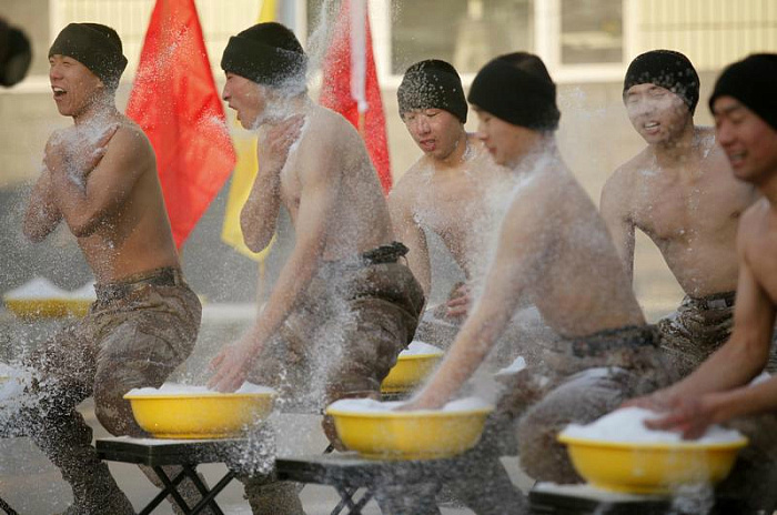 Никакие погодные условия, в том числе и суровая зима, не влияют на ход подготовки солдат китайской армии