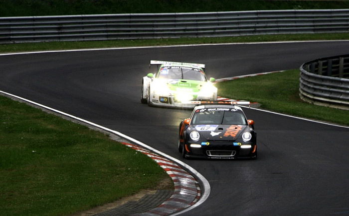 В прошедшие выходные на знаменитой германской трассе "Нюрбургринг" прошел ежегодный гоночный марафон. 150 экипажей сутки боролись и за победу, и за выживание на трассе.