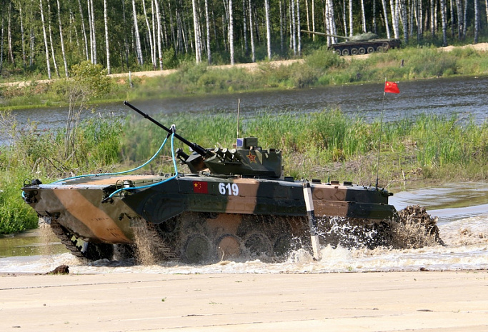 На полигоне Алабино прошли первые заезды экипажей БМП в рамках дисциплины "Суворовский натиск" Международных армейских игр. Соревнования включали в себя скоростной участок, стрельбу, преодоление препятствий и водный слалом.