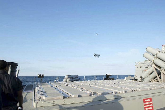 Российские фронтовые ​бомбардировщики Су-24 и боевой вертолет пролетели над американским эсминцем «Дональд Кук», находящимся сейчас в Балтийском море. По информации Reuters, Су-24 прошел на сверхмалой высоте, «оставив след на воде». Полет бомбардировщика сопровождался семью проходами вертолета Ка-27, делавшего снимки корабля с близкого расстояния. Об этом агентству сообщил источник в Минобороны США, пожелавший остаться анонимным. Российские самолеты не несли вооружения. По мнению Пентагона, маневры Су-24 и вертолета были небезопасными и рассматриваются как потенциально провокационные, поскольку могли привести к аварии.