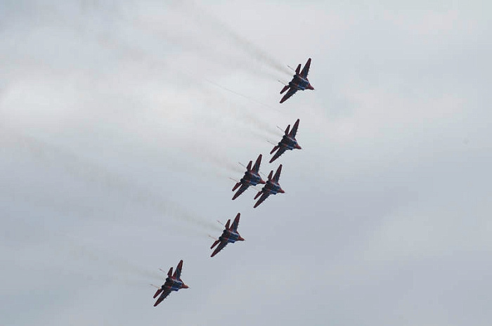 Празднование дня рождения самых известных пилотажных групп российской армии прошло 21 мая на подмосковном аэродроме Кубинка