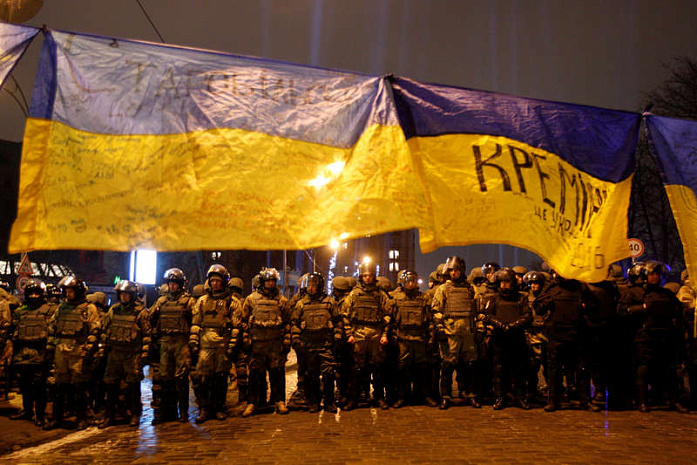 Протестующие на главной площади страны сторонники торговой блокады Донбасса требуют отставки украинского правительства.