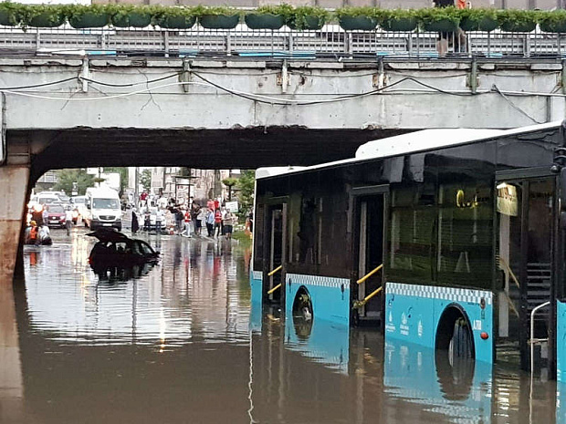 Мощный шторм, ливневые дожди и град прошлись над Босфором. Из-за стихии были затоплены подземные переходы и автомобильные тоннели. Сильный ветер стал причиной обрушения минарета. Из-за урагана в порту Хайдарпаша упал портальный кран.