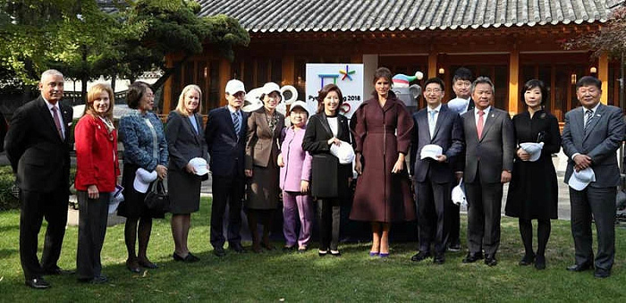 Меланья Трамп сопровождает супруга в его азиатском турне. Президентская чета прибыла в Южную корею.