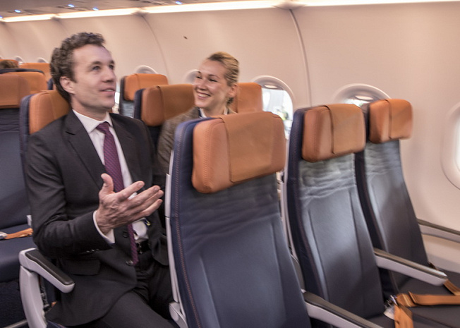 Самолёты семейства A320neo отличаются самым широким и просторным салоном среди узкофюзеляжных лайнеров. Компоновка салона A320neo – 12 кресел в классе Бизнес и 144 кресла в классе Эконом. Шаг кресел в бизнес-классе – 96,5 см, в экономическом классе – до 76,2 см.