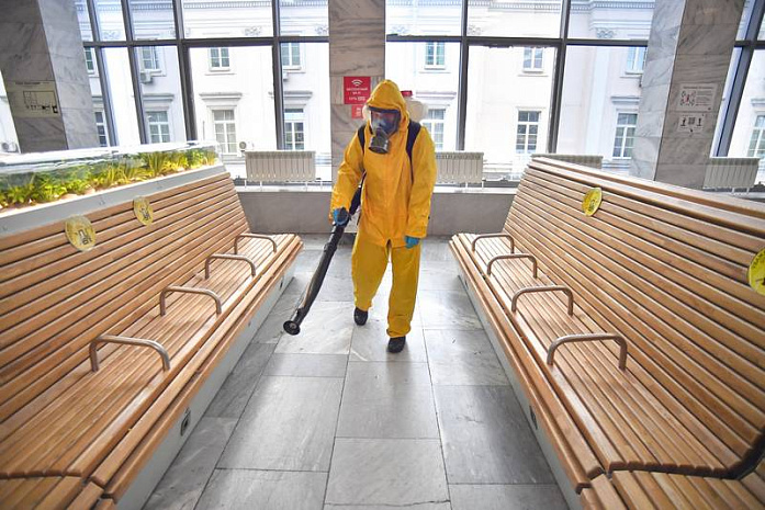 В рамках борьбы с коронавирусной инфекцией помещения вокзала были обработаны сотрудниками центра «Лидер» МЧС России.