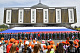 Улицы и здания оформлены цветами российского флага, автолюбители в честь праздника провели пробег по Садовому кольцу, а у Музея Победы развернули триколор площадью более 1000 кв. м.