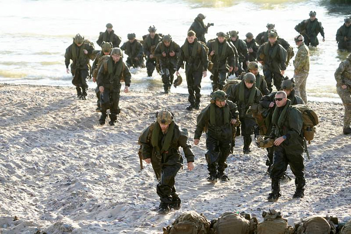 Подразделения морских пехотинцев США и Великобритании высадились на эстонское побережье недалеко от Вентспилса в рамках учений Baltops 2023.