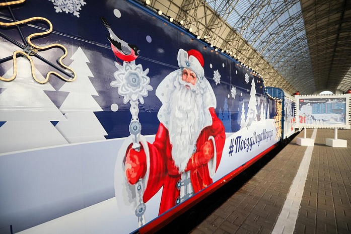 Состав, на котором один из символов Нового года, отправится в путешествие по России, презентовали на Киевском вокзале столицы.