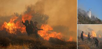 С пламенем, которое усиливается из-за ветра и засушливой погоды, сражаются около 130 пожарных при поддержке 48 единиц техники и шести вертолетов