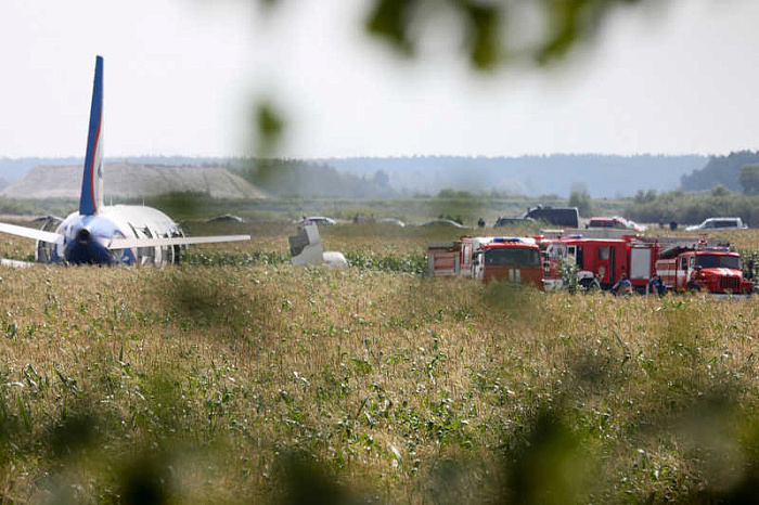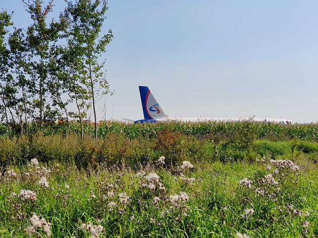 Airbus А321 сел на брюхо в кукурузном поле вблизи деревни Рыбаки, которая расположена в 3-5 км от взлетно-посадочной полосы аэропорта Жуковский. Как рассказал ТАСС источник, знакомый с ситуацией, после попадания чайки в двигатель последний загорелся. «Экипаж принял решение сажать самолет немедленно, не возвращаясь в аэропорт Жуковского. Он отключил двигатели, самолет практически спланировал и сел на брюхо в поле», - рассказал собеседник агентства.
