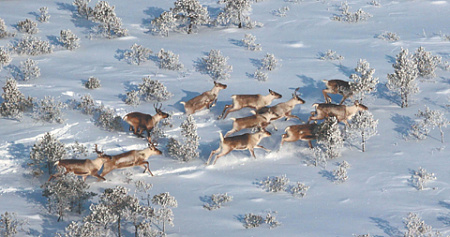 В Красноярском крае исследователи в режиме реального времени отслеживали направление перемещений северных оленей. До недавнего времени информация об этих обитателях Западного Таймыра была весьма фрагментарной и противоречивой, и потому нужно было дополнить и уточнить ее. «Роснефть» ранее уже организовывала изучение этого вида в ходе двух обширных экспедиций и организации авианаблюдения по маршрутам протяженностью более 26 тыс. км в районе Центрального и Восточного Таймыра. Полученные тогда данные помогли построить математические модели динамики численности, а также установить фактический и оптимальный размеры местной популяции. В процессе изучения животных на некоторых из них надевали ошейники с системой спутникового мониторинга и встроенными GPS-приемниками, что позволило наблюдать за перемещением оленей в течение года, выявлять сезонные и другие особенности их поведения.