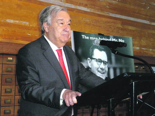 Генсек ООН Антониу Гутерриш на церемонии открытия выставки, посвященной 110-летию Андрея Громыко, 2019 год.