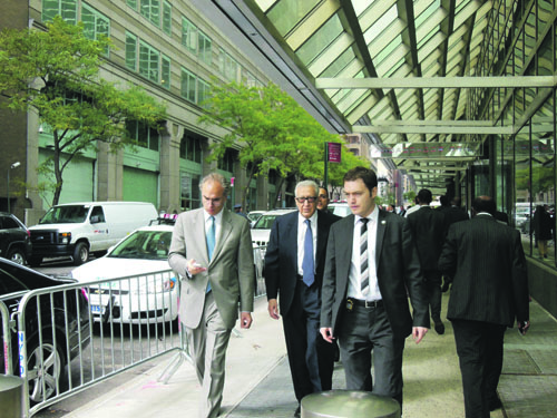 Спецпосланник ООН по Сирии Лахдар Брахими (в центре), 2013 год.