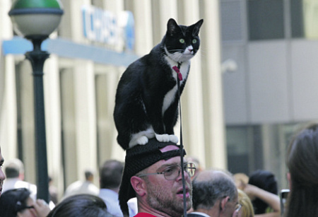 Американцы больше любят собак, но можно встретить в уличной толпе и такую парочку.