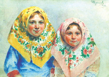 Одну девочку обидеть легко. А две девочки – это сила! Иван Куликов. Девочки. 1918. Муромский историко-художественный музей