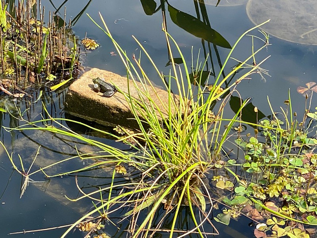 Летом в пруду, на который с одного бока как раз и выходит Мыс Доброй Надежды, по-матиссовски радуют душу красные рыбки, булькают упрямые черные карпы, пытающиеся ухватиться за какую-нибудь травинку или утаскивающие вглубь соломинку. Раскрываются кувшинки. В зарослях шуршит красноухая черепаха, и на все лады распеваются, как они думают, романтично лягушки.