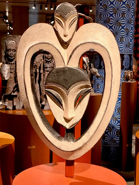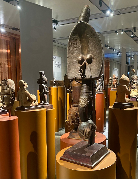 Здесь же есть, например, и фигуры бауле из Кот-д’Ивуара с тонкими вытянутыми ликами и крошечными ртами, «неспроста напоминающие трактовки лиц на портретах Амедео Модильяни», о чем сообщают, настраивая на исследовательский лад, авторы справочного стенда: «Ряд подобных «звездных» ассоциаций на примерах экспозиции можно продолжать еще долго».