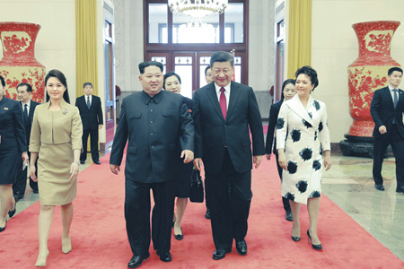 Ким Чен Ыну с супругой, вперые совершившим зарубежный визит, был оказан теплый прием в Пекине Си Цзиньпином. Фото Reuters