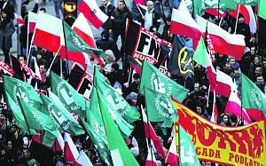 Демонстрация в Варшаве все же состоялась ближе к вечеру 11 ноября. Но единым шествием, как призывал Дуда, она не получилась. В сущности, прошли два марша. В начале колонны под бело-красными флагами отшагали свое Дуда, Моравецкий, члены правительства партии власти «Закон и справедливость» и ее лидер Ярослав Качиньский. А затем хлынула в свободном потоке основная масса участников «Марша независимости» под флагами националистических организаций «Всепольская молодежь» и «Национально-радикальный лагерь» и лозунгом «Бог, честь, родина». Замечены были правые радикалы из Словакии и Австрии, а также под своими штандартами итальянские националисты из Forza Nuova. Взрывались петарды, в наступающих сумерках взлетали фейерверки, раздавались выкрики «Долой Европейский союз!».