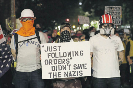 Ни одно из последних решений президента США не было так единодушно принято в штыки на местах, как введение в Портленд лиц в зеленой камуфляжной форме без опознавательных знаков, которые принялись производить аресты и разгонять бунтующие толпы с помощью слезоточивого газа. Масштабы их деятельности, конечно, не стоит преувеличивать. Счет арестованных ими не идет даже на десятки. Тем не менее для США сам факт появления на улицах городов подобных «зеленых человечков» – явление чрезвычайное.