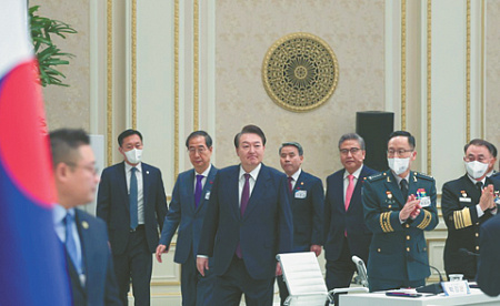 Юн Сок Ёль (в центре) готов уравновесить силу силой. Фото с сайта www.president.go.kr