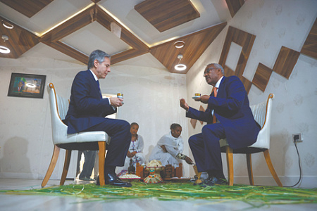 Госсекретарь США и министр иностранных дел Эфиопии Демеке Меконнен пьют кофе за мир в Тыграе. Фото Reuters