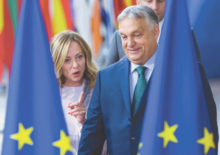 Премьер-министр Италии Джорджия Мелони и глава правительства Венгрии Виктор Орбан надеются, что дружба с Трампом принесет им немалую пользу. Фото Reuters