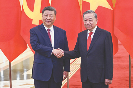 Председатель КНР Си Цзиньпин и президент Вьетнама То Лам обсудили в Ханое перспективы сотрудничества двух стран и последствия тарифной войны, развязанной Америкой. Фото Reuters